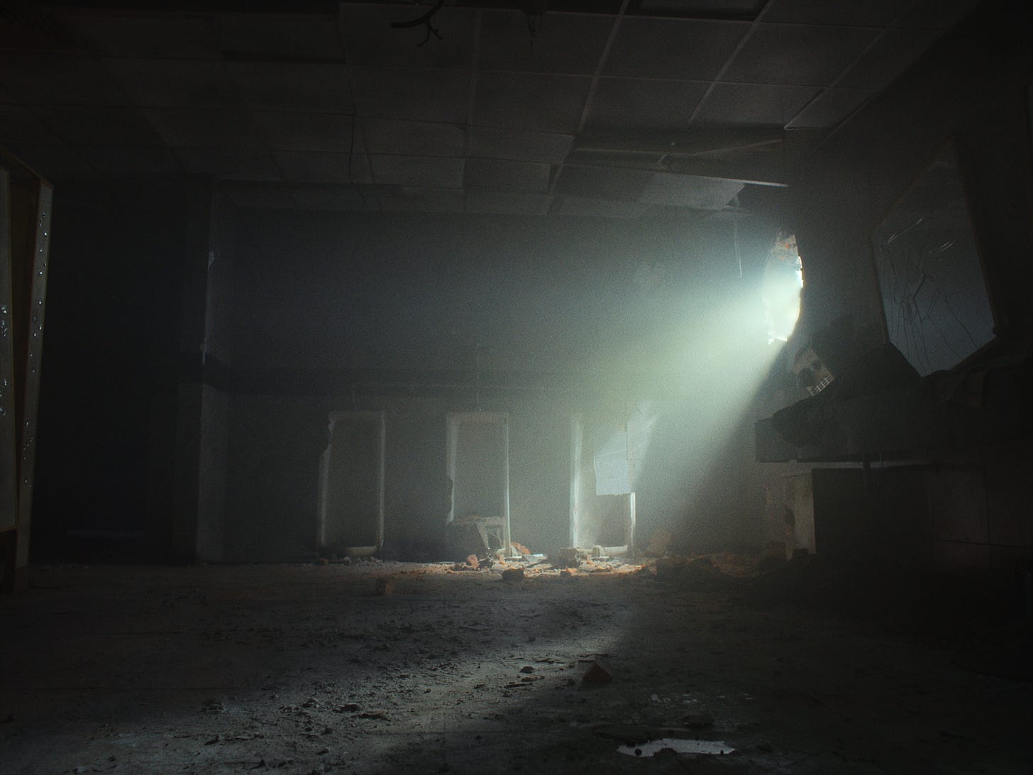 Y afuera, el sonido es un dinamizador de todo lo que pasa adentro. Es decir, el terror de estar adentro obedece al sonido que ocupa toda la película por fuera de campo. Hay como unos anillos en un radio que diseñamos con el diseñador de sonido, con Carlos García, para ir abriendo desde el pasillo cercano hacia el interior del palacio, hacia la parte media de la Plaza Bolívar, hacia la plaza completa y por allá la ciudad completa después, que se siente muy hacia el final, porque el combate al principio no dejaba mucho oír lo que pasaba. Y es un sonido muy afectado, muy psicológicamente creado para que vaya creciendo como un monstruo, como es la guerra, porque básicamente, está dosificado también para que tenga una curva emocional y una especie de arco, de lo contrario estaría uno cansadísimo de oír ese sonido en diez minutos. Y el sonido siempre vino desde el primer momento en que quise escribir esta película, ligado a la Casa tomada, de Cortázar, a los invasores.