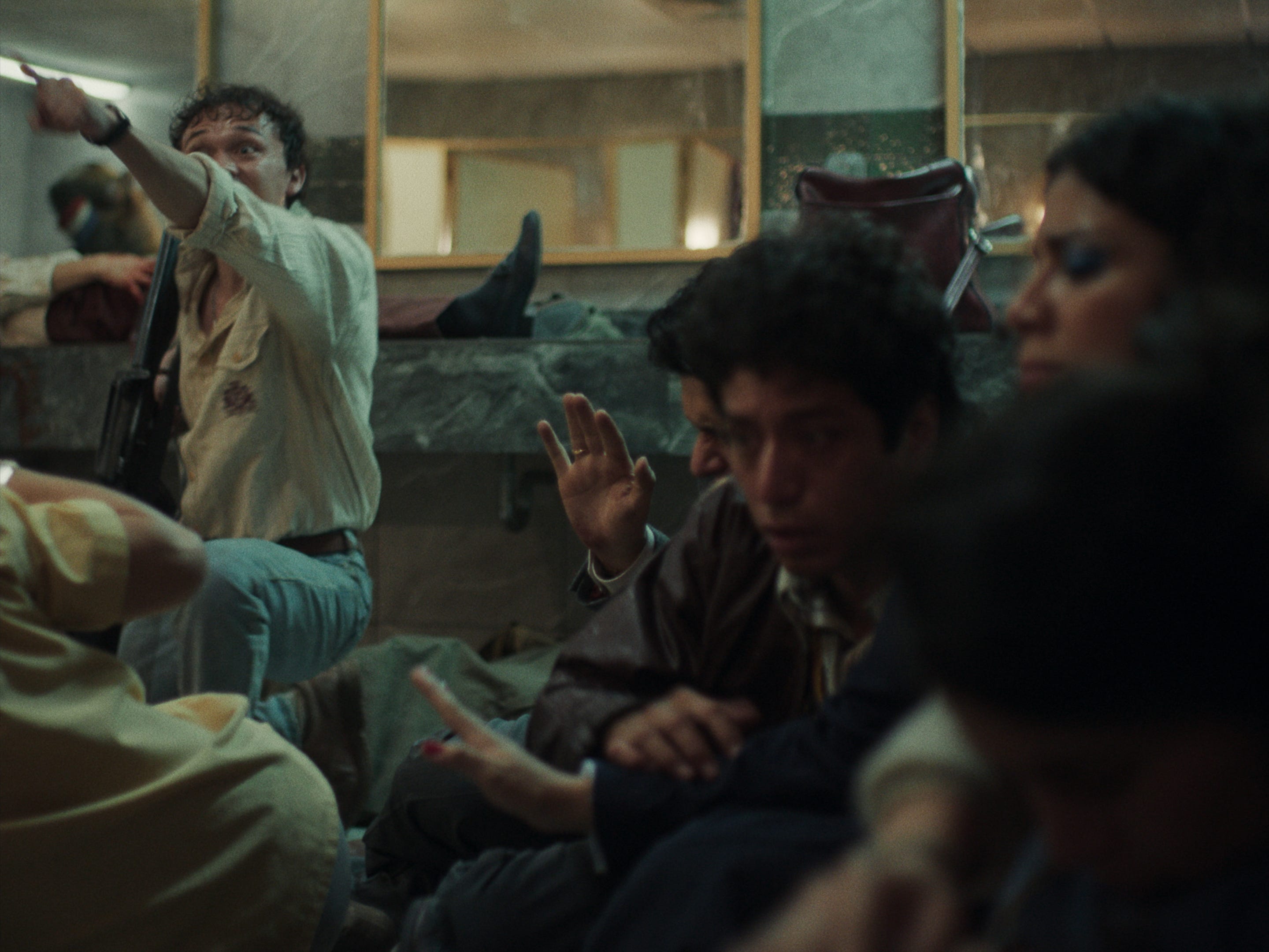 El reparto es una cosa bellísima... En el reparto hubo una intervención muy puntual, pues obviamente mía, pero teníamos un gran director de casting, que es Manuel Orjuela, un director de teatro increíble. Y Manuel incluso después del casting me ayudó en el rodaje siendo el coach de actuación y nos repartíamos: mientras unos iban entrando, él me ayudaba afuera como a generar intenciones. No teníamos tiempo que perder, teníamos 22 días de rodaje, que es muy poco realmente para una película. Entonces empezamos a buscar un ensamble actoral que representara a una Colombia que estuvo entre ese baño. Es decir, cuando yo pienso en el baño del Palacio de Justicia, pienso que es tomarle una foto a Colombia en 1985. Hombres altos, blancos, con oportunidades de estudiar en cargos altos; mujeres dedicadas a servir a los demás hombres; una sola mujer como Aydé Anzola Linares que llega a un cargo alto y eso la lleva también a tener los comportamientos de alguna manera. Una presencia con algunas caras casi indígenas o afro que tienen que tomar las armas. El casting tenía que ser una Colombia completa entre ese baño.